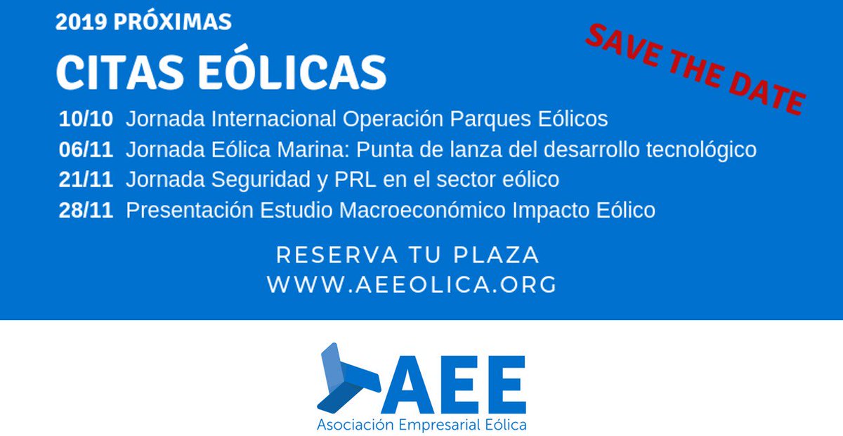 La #OperativaEólica, la mejora de los procedimientos o el desarrollo de herramientas innovadoras de análisis de activos, serán algunos de los temas de la Jornada Internacional sobre el Análisis Operativo de Parques #Eólicos del 10 OCT. Regístrate en https://t.co/pIWUi9MwSa https://t.co/7bjzN5NLCcNo te pierdas las próximas citas #eólicas que tendremos en #octubre y #noviembre y en las que trataremos temas como la #OperativaEólica, la #eólica #offshore, seguridad y #PRL en el sector y la presentación de una nueva edición del #InformeMacro....Hoy hemos celebrado una reunión con representantes de #RecursosHumanos y #Formación de empresas del sector #eólico para trabajar conjuntamente en sinergias para el #empleo y captación de #talento y más formación en la #eólica. Interesantes aportaciones de todos ellos. #WindTalent..."Las subastas serán necesarias para incorporar nueva potencia #eólica al mix español y que generarán que las máquinas sean fabricadas por empresas nacionales" Entrevista a JV Márquez, CEO de AEE, en @SMARTGRIDSINFO https://t.co/0G1pfxxTVB https://t.co/7ZtbO3j4i3#Nordex ha encargado a @TUVSUD_ES la certificación tipo de sus últimos #aerogeneradores N149/5.X y N163/5.X. Más información en https://t.co/I4FHJ2peDc @ACCIONA https://t.co/Su5aYtlrtJNo te pierdas las próximas citas #eólicas que tendremos en #octubre y #noviembre y en las que trataremos temas como la #OperativaEólica, la #eólica #offshore, seguridad y #PRL en el sector y la presentación de una nueva edición del #InformeMacro....Entrevista a JV Márquez, CEO de AEE, en @aragonradio, sobre el papel de la #eólica en la #TransiciónEnergética como una de las columnas vertebrales por su competitividad en costes y su desarrollo industrial. A partir del min 05:12 https://t.co/wEVarcVl5b #DiarioEconomicoAR...Gracias @Divulgameteo por la entrevista a Juan Virgilio Márquez, CEO de AEE, en vuestra magnífica revista @RAM_meteo